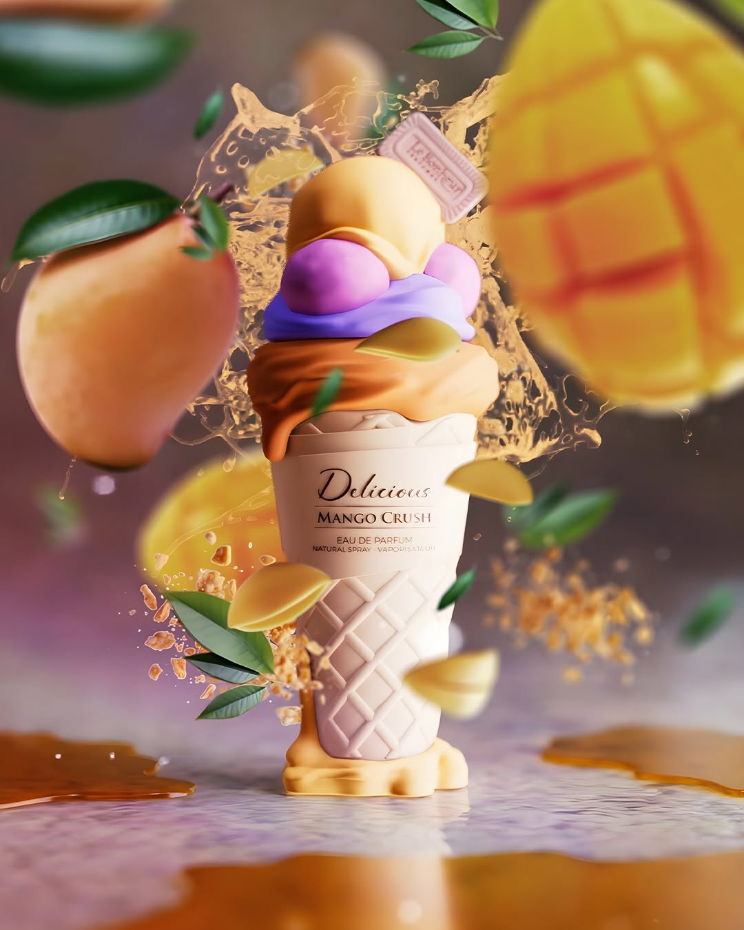 العنوان: عطر ديليشس مانجو كراش (DELICIOUS MANGO CRUSH) – انفجار استوائي من السعادة والانتعاش